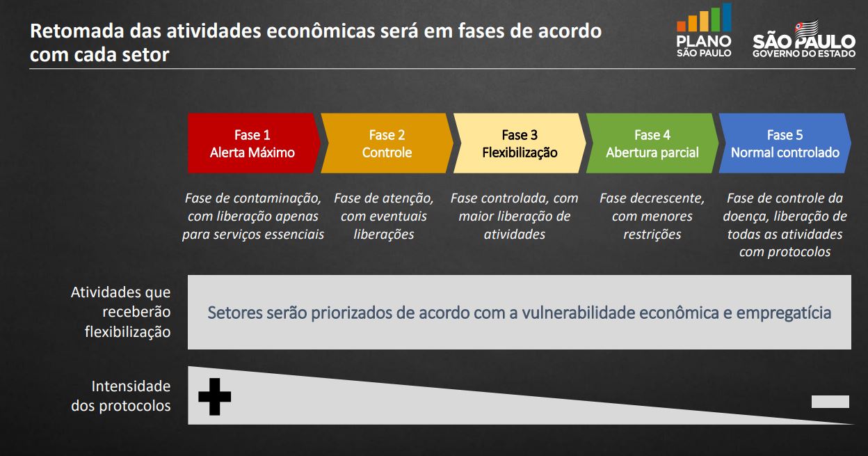 Para essa reabertura, o governo do estado elaborou, junto de agentes dos setores, um protocolo geral. No caso das salas de cinema, a lotação não poderá ultrapassar 60% de sua capacidade. Além disso, os cinemas devem organizar as saídas e dar 30 minutos de espaço entre as sessões.